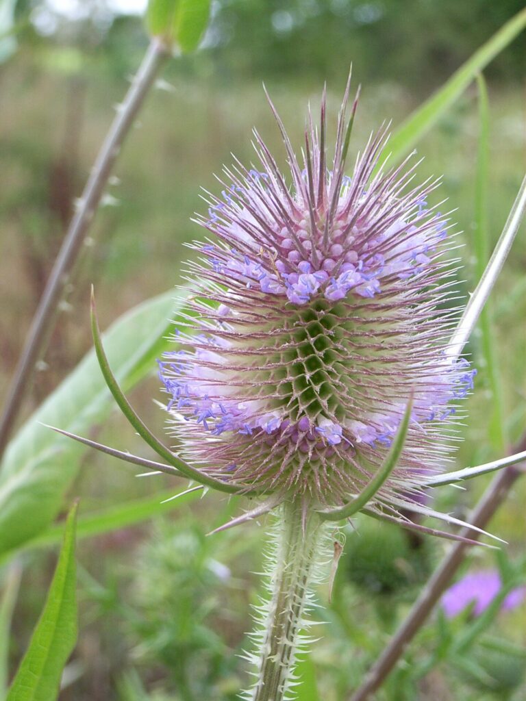 Sehen aus wie Disteln, sind ganz schön kratzig und doch ausgesprochen fesch: die Karden. Der Name Karde weist auf eine alte Technik des Weberhandwerks hin, das Kardieren. Die borstigen Blütenköpfe von der Echten Weberkarde (Dipsacus sativus), die sehr selten verwildert oder angebaut zu bewundern ist, dienten einst zum Aufrauen von gewebten oder gestrickten Wollstoffen, dem Kardieren, Kartätschen oder Krempeln. Mit den elastischen, an der Spitze zu Haken umgebogenen Spreublättern der Kardenköpfe ließen sich feine Wollfasern aus dem Stoff herausziehen, dessen Oberfläche wurde dadurch flaumig, das Gewebe insgesamt weicher, voluminöser. Darauf gehen die alten Bezeichnungen Weber-,