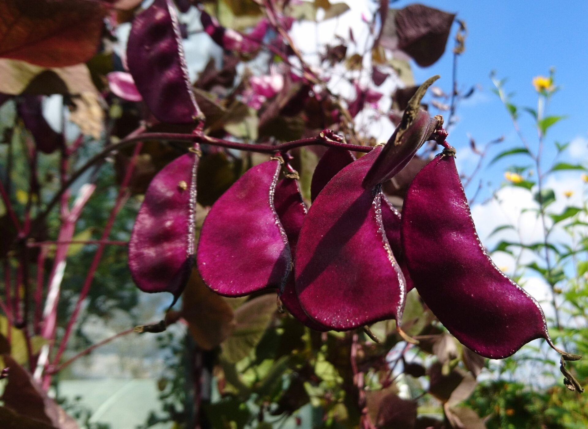 Beim Anbau von Bohnen werden unter trocken-warmen Bedingungen Meter- (=Spargel-Bohne) und Helm-Bohne zunehmend interessant. Beide sind sehr gut trockenheitsverträglich und unterscheiden sich im Anbau nicht von „normalen“ Bohnen. Zunächst werden im Haus Jungpflanzen vorkultiviert. Dafür werden ab Ende April Tuffs von ca. 7 Korn in 9er-Töpfe gesät. Nach den Eisheiligen kann ausgepflanzt werden. Beide Bohnenarten benötigen ein Rankgerüst.