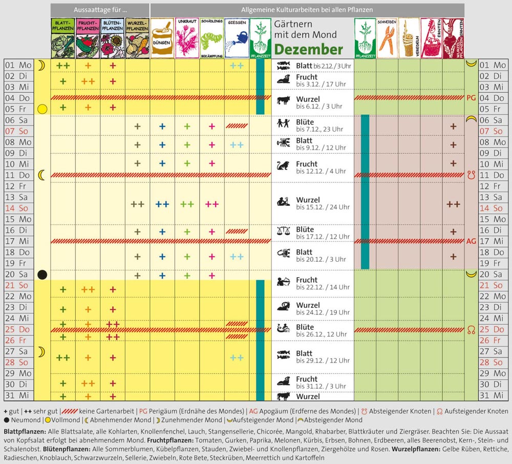 - Unkraut jäten, Boden lockern, sofern der Boden nicht gefroren ist. Wenn erforderlich, sollte der Boden im November oder erst im Dezember bei abnehmendem Mond umgegraben werden. Zu empfehlen ist das Umgraben auf jeden Fall bei schweren Böden und bei Schollenbildung, wegen der Frostgare.