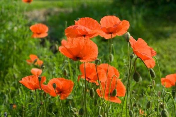 Klassischer Klatschmohn mit großen, leuchtend roten Blüten. Er wächst auf nährstoffreichen, durchlässigen Böden in sonniger Lage. Relativ schneckensicher. Die feinen Samen werden direkt gesät und nur flach mit Erde bedeckt. Für die Vase die Stiele mit aufbrechenden Knospen schneiden, die Samenstände können für Trockengestecke genutzt werden.