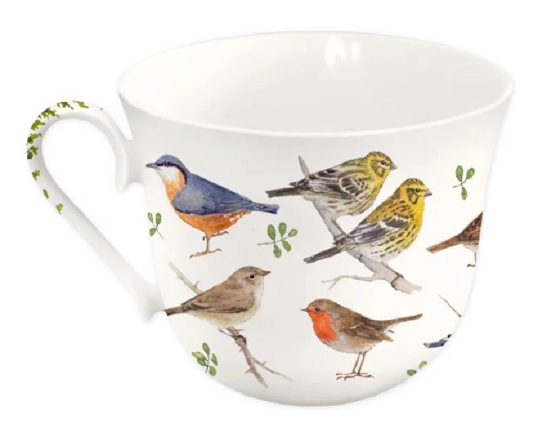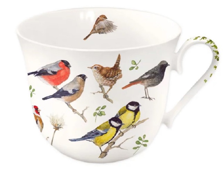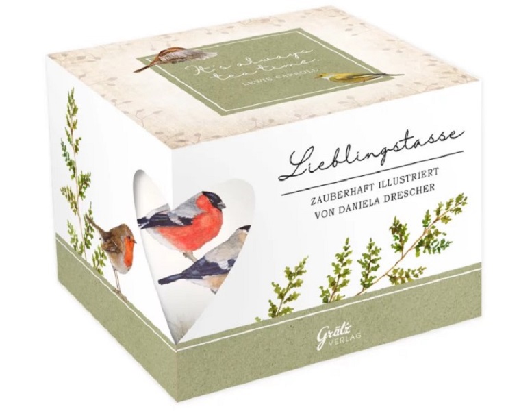 Auf der Tasse Gartenvögel von Daniela Drescher herrscht reges Treiben und lautes Gezwitscher. Die bunten, naturgetreu gezeichneten Vögel umrahmen die komplette Porzellantasse. In der praktischen Pappschachtel macht sich die hochwertige Tasse auch wunderbar als Geschenkidee.