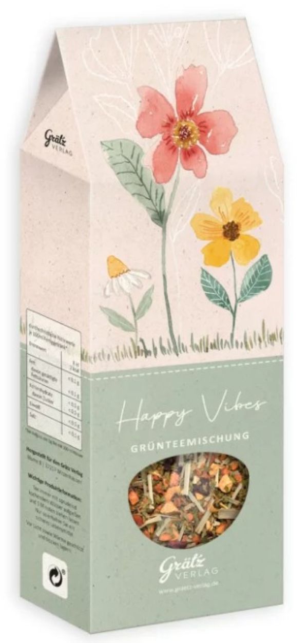 • Grünteemischung – Grüner Tee Sencha (71%), Pfefferminze, Orangenschalen, Zitronenverbene, Zitronenschalen, Süßkraut, Ringelblumenblüten, natürliches Aroma